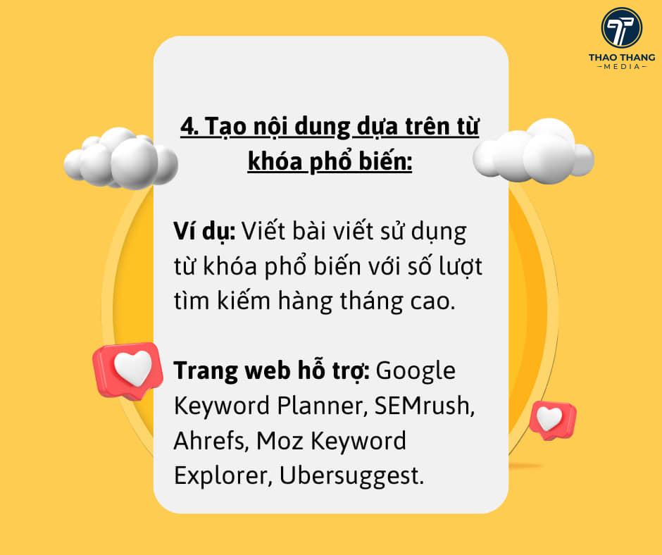 4. Tạo nội dung dựa trên từ khóa phổ biến: