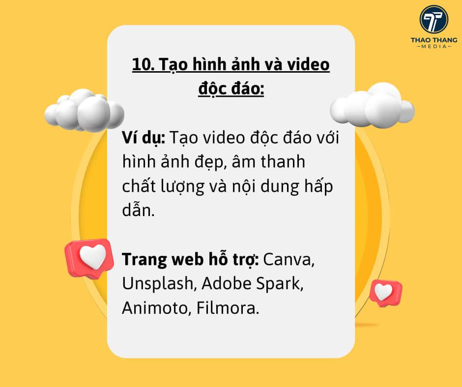 Ví dụ: Tạo video độc đáo với hình ảnh đẹp, âm thanh chất lượng và nội dung hấp dẫn.
