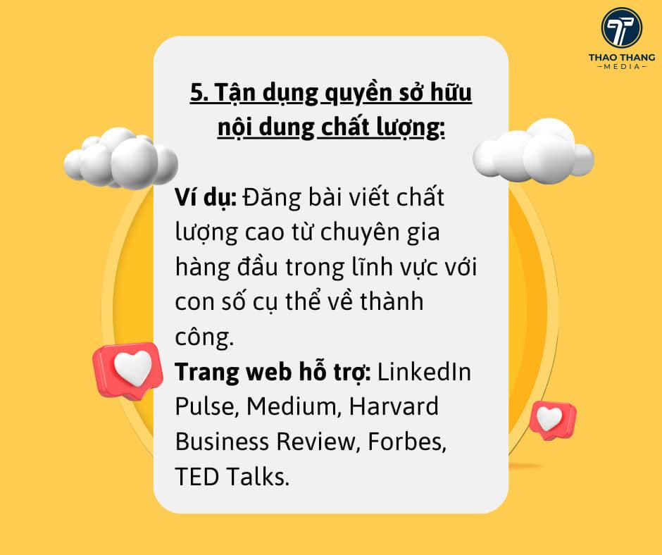 Ví dụ: Đăng bài viết chất lượng cao từ chuyên gia hàng đầu trong lĩnh vực với con số cụ thể về thành công.